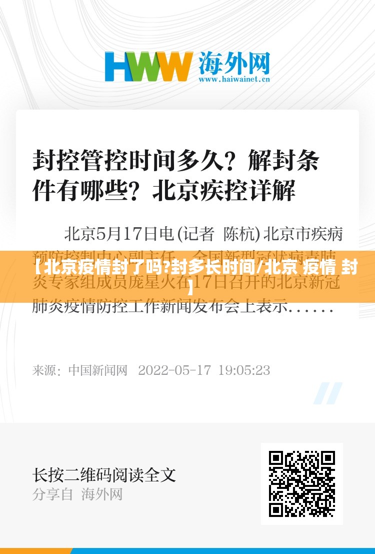 随着新冠疫情在全国多地出现反复,北京市作为中国的首都和国际大都市,其疫情防控措施备受关注,许多市民和网友都在询问:“北京疫情封了吗?封多长时间?”这个问题不仅关系到日常生活,还涉及经济、社会等多个层面,本文将基于公开信息和政策分析,...