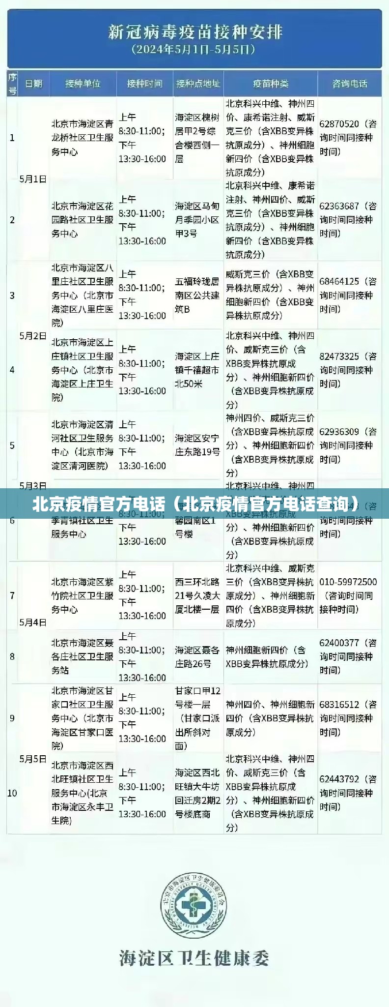 在疫情防控的紧要关头,准确、权威的信息传递成为保障公众健康和安全的关键,北京作为中国的首都,人口密集、流动性大,疫情管控工作尤为复杂,官方疫情电话作为政府与市民之间的重要桥梁,不仅提供了信息咨询、政策解读、求助服务的渠道,更在关键时刻成为一...