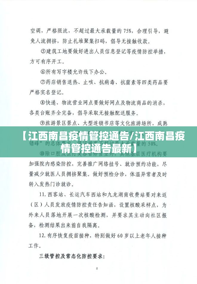 自新冠疫情发生以来,各地根据疫情发展态势,及时发布管控通告,成为阻断病毒传播、保障人民生命安全和身体健康的关键举措,江西省南昌市作为省会城市,其疫情防控措施备受关注,每一份《南昌市新冠肺炎疫情防控应急指挥部通告》的发布,都不仅是应对疫情的即时指令,更是这座城市在特殊时期展现治理能力、传递社会信心、凝聚全民力量的重要载体,本文旨在对南昌市疫情管控通告的核心内容、制定逻辑及社会意义进行梳理与解读。