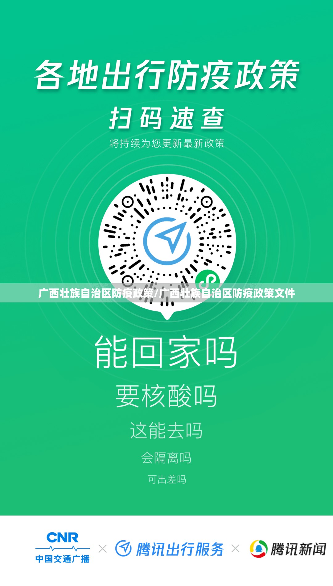 3、广西于1月15日更新防疫规定,从有本土新冠病例报告的省(区、市)来(返)桂人员,需持48小时内核酸检测阴性结果方能入桂。中高风险地区(以市为单位不分城区)来桂旅客,需提前24小时报备社区,落地实施14天集中隔离。